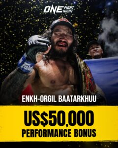 Мөн ONE Championship-ийн Төлөөлөн удирдах зөвлөлийн дарга, гүйцэтгэх захирал Chatri Sityodtong-аас 50,000 ам.долларын гүйцэтгэлийн урамшуулал хүртсэн