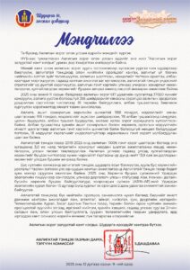 Нийгэм АТГ-ын дарга, тэргүүн комиссар З.Дашдаваагийн мэндчилгээ Нийгэмэрх зүй АТГ-ын дарга, тэргүүн комиссар З.Дашдаваагийн мэндчилгээ 12/09/2025 10 0 АТГ нь 2019-2025 онд авлигын 11006 гэмт хэрэг шалгаж 3,0 их наяд төгрөгийн хохирлыг мөрдөн шалгах ажиллагааны явцад нөхөн төлүүлж, улсын төсөвт төвлөрүүлсэн. Гадаад улсад хулгайлагдсан 13,9 сая ам.долларыг улсдаа авчирсан. Share Facebook Twitter Pinterest WhatsApp Сүүлд нэмэгдсэн АнгилалгүйА.Болор - 12/09/20250ВАЛЮТЫН НӨӨЦИЙН ХЭМЖЭЭ ЗУРГААН ТЭРБУМ АМ. ДОЛЛАРТ ХҮРЛЭЭЗасгийн газар экспортыг эрчимжүүлж, худалдааг нэмэгдүүлэх, хүнд суртлыг халах, хулгайг цэгцлэх замаар эдийн засгаа сэргээх бодлогын арга хэмжээнүүдийг шат...Read more АнгилалгүйА.Болор - 12/09/20250Авлигатай тэмцэх газаэр хэрэг бүртгэлтийн 3 хэрэгт нийт 14 объектод нэгжлэгийн ажиллагаа явуулжээ.Авлигатай тэмцэх газрын Мөрдөн шалгах хэлтэс 2025 оны 12 дугаар сарын 1-7-ны өдрүүдэд гэмт хэргийн шинжтэй 100 гомдол, мэдээллийг...Read more НийгэмА.Болор - 12/09/20250АТГ-ын дарга, тэргүүн комиссар З.Дашдаваагийн мэндчилгээАТГ нь 2019-2025 онд авлигын 11006 гэмт хэрэг шалгаж 3,0 их наяд төгрөгийн хохирлыг мөрдөн шалгах ажиллагааны явцад нөхөн...Read more НийгэмА.Болор - 12/08/20250Өнөөдрөөс бага ангийнхан танхимаар, дунд ангийнхан цахимаар хичээллэнэТомуу, томуу төст өвчний тохиолдлын удирдлагын тогтолцооны багийн хурлаар нөхцөл байдлын мэдээлэл, орчны зохицуулалтын багуудын ажил, “Томуугийн үзлэг, оношилгооны...Read more - Advertisement - АнгилалгүйА.Болор - 12/08/20250Гаалийн байгууллагын хууль бус үйл ажиллагаатай холбоотой мэдээллийг хүлээн авах шугам нээжээОлон нийтийн хяналтын оролцоог хангах зорилгоор 11-11 төвд гаалийн байгууллагын хууль бус, ёс зүйгүй үйлдэл, хүнд суртал, чирэгдлийн талаар...Read more ДэлхийА.Болор - 12/08/20250Баатархүү Энх-Оргил Фабрицио Андраде-г ялж, “ONE” Холбооны Bantamweight MMA Дэлхийн аваргын бүсийг хүртэв.Монголын хоёр дахь MMA Дэлхийн аваргыг тодруулсан гайхалтай сенсациудад “The Tormentor” Б.Энх-Оргил нь Fabricio “Wonder Boy” Andrade-г 4 дүгээр...Read more Танд сонирхуулахад НийгэмА.Болор - 03/31/20220ШУДАРГА ҮНЭНИЙ ДҮРД ТОГЛОСОН М.ЭНХ-АМГАЛАН ЭРХ МЭДЭЛТНҮҮДТЭЙ ХЭРЭГ НАЙМААЛЦДАГ БАЙСАН УУМонголын цагдаа, прокурорт насаараа ажилласан Б.Энх-Амгаланг “Шударга нь дэндсэн...Read more Нийгэмbold baatar - 06/03/20200УИХ-ын ээлжит сонгуульд нэр дэвшигчдийн ХОМ-ийг нийтэд ил болголоо Монгол Улсын...Read more Танд таалагдаж магадгүй юмRELATEDСанал болгож байна Нийгэм Өнөөдрөөс бага ангийнхан танхимаар, дунд ангийнхан цахимаар хичээллэнэ Томуу, томуу төст өвчний тохиолдлын удирдлагын тогтолцооны багийн хурлаар... А.Болор - 12/08/2025 0 Read more Хууль АТГ-аас “Авлига ашиг сонирхлын зөрчлөөс урьдчилан сэргийлэх нь” сэдэвт говийн бүсийн сургалтыг зохион байгуулжээ. Авлигатай тэмцэх газар, Шүүхийн ерөнхий зөвлөлтэй хамтран “Авлига ашиг... А.Болор - 12/08/2025 0 Read more Хууль АТГ нь “Цемент шохой” ХХК-д учирсан 1,6 тэрбум төгрөгийн хохирлыг нөхөн төлүүлээд байна Авлигатай тэмцэх газраас явуулсан мөрдөн шалгах ажиллагааны үр дүнд... З.Майцэцэг - 11/20/2025 0 Read more Нийгэм Бүх нийтийн амралтын өдрүүдээр зарим хилийн боомтууд ажиллахгүй Энэ сарын 21-ны өдөр буюу ирэх баасан гарагт “Их... А.Болор - 11/20/2025 0 Read more